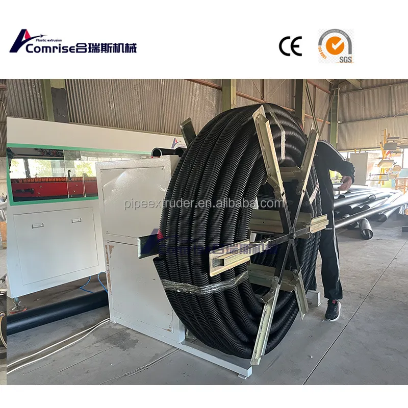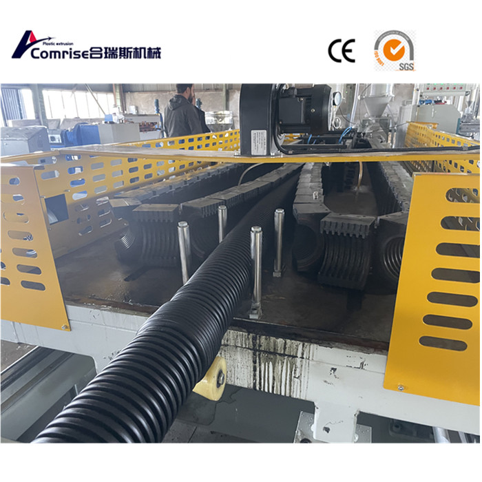 2 कुर्थस्थेक्स: पग्लिएको पाइपलाई मोल्ड र भ्याकुम चिसो प्रयोग गरेर एक नालीदार पाइप आकार दिन्छ।