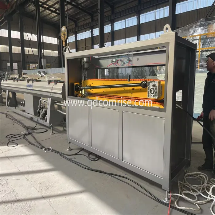 एक नियन्त्रित गति मा उत्पादन लाइन को माध्यम बाट पाइप तानिन्छ।